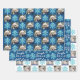 Create your own mix and match blue opal snowflake wrapping paper sheets with two of your photos for one of a kind custom Christmas or winter holiday gift wrap. Each individual sheet is designed with accents of faux iridescent blue opal snowflakes to coordinate your custom wrapping paper designs. Sheet 1 features a repeat chequerboard pattern of your favourite photo alternating with a large blue opal snowflake all set on a rich classic blue background. Sheet 2 is designed with a background of classic blue and a typography design of JINGLE BELLS, MISTLETOE and LET IT SNOW in mixed fonts scattered between blue opal snowflakes of various sizes. Sheet 3 is a chequerboard style pattern alternating between your photo and blue opal snowflakes on a background of simple white. Personalise your own mix and match custom Christmas photo wrapping paper sheets with this unique blue opal snowflake template gift wrap assortment.