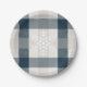 Snowflake Blue Plaid Winter Holiday Christmas Paper Plate