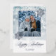 Capture the magic of the holidays with our elegant and customisable Christmas photo card. This beautiful design features a softly falling snow blue and white background. The highlight is a prominent foil frame that perfectly showcases your favourite photo. Adorned with delicate, shimmering foil snowflakes, this card is a timeless way to send warm wishes to friends and family. Personalise it with your own photo and family name for a truly unique and memorable holiday greeting. Perfect for new couples, families, or anyone looking to share a special moment this Christmas. Created by Simply Farmhouse Press.