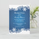 Snowflake blue white winter wedding invitation, featuring a white border of snowflakes on glowing blue background. A perfect choice for Winter December weddings. Also suitable for your Christmas party! Just change text!