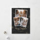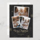 Custom black and gold photo Merry Christmas card featuring a photo collage against a black background adorned with snowflakes and falling snow. Easily personalise this holiday cards with your photos and text.