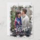 Snowflakes Personalised Photo Christmas Pregnancy Announcement Cards. Expecting parents! Modern white hand lettered typography "the more the merrier" script card to share your happy news with family and friends in the holiday season. Features a white snowflake frame overlay. At the backing red background with white snowy frame. You can personalise the design by replacing the sample text and vertical photo. #3343 If You need help or matching items please contact to me!