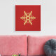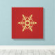 A snowflake vector digital design with a gold snowflake on a dark red background.