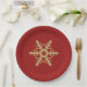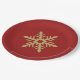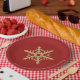 A snowflake vector digital design with a gold snowflake on a dark red background.
