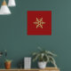 A snowflake vector digital design with a gold snowflake on a dark red background.