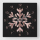 Snowflake Elegant Black and Rose Gold Christmas Square Wall Clock
