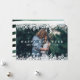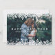 Elegant and modern holiday card design features your favourite horizontal or landscape orientated photo framed at the top and bottom by a border of white snowflake illustrations. "Happy New Year" appears in modern lettering as a white text overlay in the centre, with your name(s) and the year beneath. To reposition text elements, use the Customise or Personalise feature.