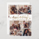 Modern Elegant Gold and White Script Snowflake 5 Photo Collage Merry Christmas Script Holiday Card. This festive, minimalist, whimsical five (5) photo holiday greeting card template features a pretty grid photo collage, some snowflake and says „Merry Christmas”! The „Merry Christmas” Calligraphy greeting text is written in a beautiful hand lettered brush font script in gold on white colour background. On the back side with your greeting message template one photo template with 3 little snowflakes. Cute greeting card for your family and friends in Christmas Holiday season.