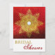 Gold snowflake on red winter wedding bridal shower invitation that features a gold foil snowflake on red background with metallic shine, crumbled texture and a jewel. This personalised design is a fully customisable template and is part of a wedding set perfect for a winter December or Christmas wedding. Note that there is not any real gold foil or jewel and they are all printed images.
