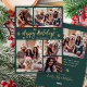 Simple Elegant Modern Script Green and Gold Snowflakes 5 Photo Collage Merry Christmas Script Holiday Card. This festive, minimalist, whimsical five (5) photo holiday greeting card template features a pretty grid photo collage, some snowflake and says „Merry Christmas”! The „Merry Christmas” greeting text is written in a beautiful hand Calligraphy lettered brush font script in gold on green colour background. On the reverse side with your greeting message template with 3 little snowflakes one photo template. Cute greeting card for your family and friends in Christmas Holiday season.