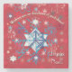 Snowflake greetings in red, blue and whites. May you have cosy and warm holiday time! Cheers!