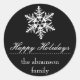 Snowflake Happy Holidays Favour Stickers / Labels (Black / White)...These fun winter thank you labels are the perfect addition to your thank you favours for your winter wonderland holiday party. Whether it's a Christmas party, Hanukkah party, a non-denominational holiday party, or just a fun winter get together these favour stickers are perfect for any occasion. Great for the finishing touch on homemade Christmas gifts for teachers, friends, co-workers, etc...much fancier than just ordinary to from labels! Ideal for a winter wedding where the bride and groom are having their wedding at a ski chalet or an ice palace. The design features a fun snowflake. The text is completely customisable. See WindyCityStationery.com for our complete line of "Snowflake" labels in a wide range of colours as well as matching "Snowflake" postage stamps, thank you cards, return address labels, save the dates and more.