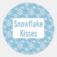 Personalised modern blue and white snowflake pattern saying "snowflake kisses". You can change the text. Perfect for sealing your Christmas card envelopes.