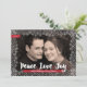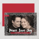 The words "Love. Peace. Joy." rendered in modern brush calligraphy plus a delicate snowflake frame make this holiday photo card extra special. Personalise with your own photo, message, and names.