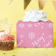 This pretty wrapping paper is pink with the words Merry Christmas in white, and lots of snowflakes. You can change the words and add your own.