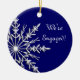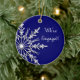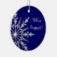 He proposed and you accepted and said YES! You are now engaged to be married! Commemorate your engagement day with the elegant Snowflake on Blue Engagement Round Ornament. Customise it with the personal names of the bride and groom to be and winter engagement date. Feel free to change the text or font to suit your needs. A classy Engagement on Blue Circle Ornament makes a unique personalised stocking stuffer, engagement party or shower gift. This pretty custom engagement ornament features an intricate silver tone snowflake on a blue background.