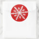 Round sticker with an image of a white snowflake on red. See matching greeting card, label, confetti and wrapping paper. See the entire Christmas Sticker collection under the CARDS & STICKERS category in the HOLIDAYS section.