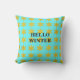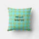 Snowflake Patterns Winter Typography Blue Golden Cushion