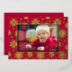 Modern, classic and traditional winter wonderland with foil falling snowflakes on a red background. The foil options are Gold, Silver and Rose Gold. Customise the text, the back text is optional, or delete. A keepsake for new parents, family and friends.