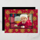 Modern, classic and traditional winter wonderland with foil falling snowflakes on a red background. The foil options are Gold, Silver and Rose Gold. Customise the text, the back text is optional, or delete. A keepsake for new parents, family and friends.