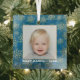 Your favourite photo is featured on a square glass ornament with gold snowflakes on a blue blurred lights Christmas background. Upload your own image to create Christmas tree ornaments for yourself or give as a gift to family, friends, parents and grandparents! MORE materials, shapes and DESIGNS in our store.