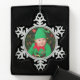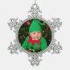 Pewter snowflake ornament shown with a cute boy elf photo. Customise this item and just change the photo to yours or buy as is.