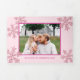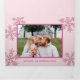 Add your photos to these elegant pink snowflake tri-fold Christmas cards and send your holiday wishes in grand style. The front cover of this horizontal design features one photo with a bold border of deep berry pink, matching text below for your name and the year and a light dusting of faux pink glitter snowflakes on the light blush pink background. As each greeting card flap is unfolded more of these unique tri-fold holiday cards is revealed. Inside has a full bleed photo template on the top and bottom flaps so you can easily add more pictures, as well as the inside cover where two more photo templates, this time with dark berry pink frames. The inside centre allows room for you to write a short Christmas letter style greeting in dark pink text on the light pink background so you can share some of the highlights of your year. The Christmas colour trend is pink and these stylish personalised tri-fold cards deliver.