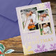 Personalise these elegant purple snowflake and real gold foil Christmas cards and add a bit of glam to your holiday this year. The Christmas colour trend is all about the purple, the 3 photo collage is all about the family and the real foil makes these flat holiday cards sparkle. Set on a background of soft pale lavender purple, this custom design features three of your family photos in an overlapping collage, each with a thin border of gold real foil surrounding it. MERRY in a simple script font and CHRISTMAS in block lettering are both printed in real foil while your name is printed in a deep purple colour. A smattering of five snowflakes, two in gold foil and three in purple faux glitter, balance out the design with elegance and a simple modern whimsy. Each personalised photo Christmas card reverses to a solid dark plum purple with a text template in white lettering so you can add a custom holiday greeting if you wish. So add your photos into this purple snowflake design and create your own one of a kind flat holiday cards, sure to delight friends and family alike.