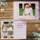 This Christmas colour trend is all about the purple and these personalised real foil 4 photo Christmas cards are all about family and friends. The light lavender lilac background sets the stage for faux glitter purple snowflakes arranged on the right side of the horizontal design. One photo on the front is surrounded by a thin frame of real foil, CHRISTMAS and the year in a large font printed in real gold foil on the left for a touch of typography and "peace love and joy" in a simple modern script font also in real foil printed on the bottom. Your name at the bottom in a simple deep purple font completes the front of these custom Christmas cards. Each flat holiday card reverses to the same pale lavender purple background, three more photo templates on the left hand side, a single faux glitter purple snowflake accent in the upper right hand corner and two text templates in dark plum purple for you to add a personalised Christmas greeting for your friends and family. So add your four photos, a designer touch, a bit of glam and elegance and the surprise of purple to your photo holiday cards, printed just for you.