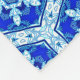 Fleece blanket in a geometric, honeycomb quilt pattern of snowflakes in deep cobalt blue and white, accented with turquoise