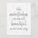 Minimalist and elegant white snowflake pattern and an inspiring quote "Like snowflakes, we are all beautiful in our own way"