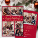 Elegant Modern Calligraphy Red and Gold Snowflake 5 Photo Collage Happy Holiday Script Christmas Holidays Card. This festive, minimalist, five (5) photo holiday greeting card template features a pretty grid photo collage, some snowflake and says „Happy Holidays”! The „Happy Holidays” whimsical greeting text is written in a beautiful hand lettered brush font script in gold on red colour background. On the reverse side with your greeting message template with 3 little snowflakes one photo template. Cute greeting card for your family and friends in Christmas Holiday season.