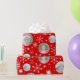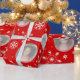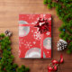 Fun holiday snowflakes and Christmas family round photos wrapping gift paper in traditional red and white. Customise with three of your own special photos. Uniquely designed by Sarah Trett.