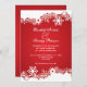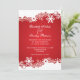 Snowflake red white winter wedding invitation, featuring a white border of snowflakes on glowing red background. A perfect choice for Winter December weddings. Also suitable for your Christmas party! Just change text!