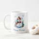 Warm up the holidays with this snowflake snowman mug, featuring a cozy snowman in a red hat and scarf, surrounded by evergreen trees and snowflakes. The “Happy Holidays” message is customizable, making it perfect for personalized winter gifting, holiday cheer, or seasonal sipping. Ideal for searches like snowman mugs, snowflake mugs, winter mugs, and custom holiday coffee cups, this ceramic mug is a festive favorite for teachers, coworkers, family, and friends. A charming way to serve up cocoa, tea, or coffee with a smile.