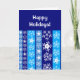 White snowflakes against stripes in shades of blue is a unique design for winter, skiers, snowboarders and all winter sports lovers.