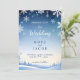Announce your special day in style with this enchanting winter wedding invitation. Featuring a snowy blue gradient sky adorned with delicate white snowflakes and a peaceful winter landscape, this design captures the magic of the season. The elegant typography ensures your wedding details stand out beautifully against the frosty backdrop. Perfect for couples planning a romantic winter celebration, this invitation sets the tone for a day filled with love, warmth, and timeless memories. Customisable text makes it easy to add your personal details and create a keepsake guests will treasure.