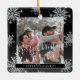 Rustic elegant winter black and white plaid family keepsake tree ornament template with sparkling snowflakes frame. +++++++++++++++++++++ Easy to personalise with your 2 photos, text script, family name and year!