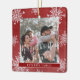 Rustic elegant winter red and white family keepsake tree ornament template with sparkling snowflakes frame. +++++++++++++++++++++ Easy to personalize with your 2 photos, text script, family name and year!