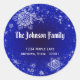 Festive return address label with frosty snowflakes on shades of blue. To pick your own solid background colour, see this label: