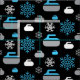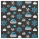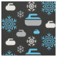Fabric featuring a snowflake and curling rock pattern in blue, grey and white on black background. Perfect for curlers and curling fans.
