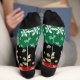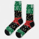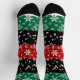 Here's a pair of holiday socks with, red and green blocks of colour, images of diamonds and of course, snowflakes.