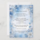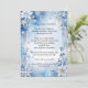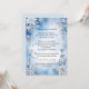 Snowflakes and flowers combine on a blue and grey background to create a beautiful winter-themed party invitation. The back is plain light blue, in a complementary shade, for more information if needed.