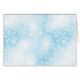 White snowflakes and lights on a soft blue background, Christmas pattern