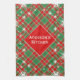 Traditional Christmas colours in a plaid pattern with a diamond shape in the middle and text that can be customised. This would make a great Christmas gift for someone who loves spending time in the kitchen.