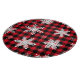 Snowflakes dance on buffalo plaid, creating a festive winter illustration.