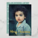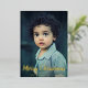 Send out holiday cheer with this cute Christmas card featuring the handwritten greeting "Merry Christmas" and snowflakes drawn in chalk over your favourite family photo. The text and snowflakes on the front are in real gold foil. The back side is a soft green snowflake pattern. You may change the colour of the background in the design editing tool.