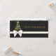 Luxurious and rich holiday design featuring a splendid Christmas tree silhouette with golden snowflakes. Decorated with a white gold gift bow on a lush anthracite black dark grey background. This festive gift certificate is perfect for your small business or to gift friends and family.