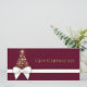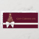 Luxurious and rich holiday design featuring a splendid Christmas tree silhouette with golden snowflakes. Decorated with a white gold gift bow on a raspberry violet lush red dark pink background. This festive gift certificate is perfect for your small business or to gift friends and family.