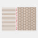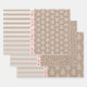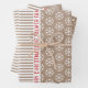 Snowflakes, Christmas trees and stripes brown kraft paper Wrapping Paper Sheets. One sheet displays a cute pattern of snowflakes and stripes on kraft paper. The second features snow and the third white trees. There also is the text "Merry Christmas" in red on a white band on all sheets. Personalise it with your text.